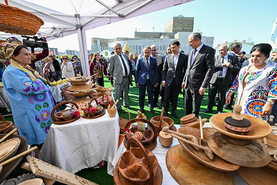 С экспозицией ознакомились Председатель Хатлонской области Давлатали Саид и Аким города Алматы Дархан Сатыбалды. Они лично пообщались с производителями и посетителями ярмарки.