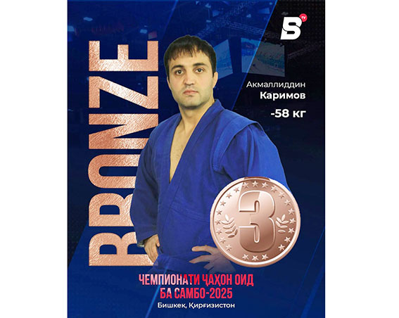 Таджикский самбист Акмалиддин Каримов завоевал бронзовую медаль на чемпионате мира по спортивному самбо среди мужчин в весовой категории до 58 килограммов. Турнир проходил с 7 по 9 ноября 2025 года в Бишкеке (Кыргызстан).