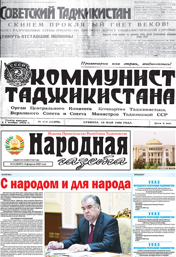 В ноябре 2025 года «Народная газета» отмечает знаменательный юбилей — дату, имеющую особое значение для всех нас. Это не просто рубеж летописи печатного слова, это часть истории Таджикистана, шагавшего от первых страниц «Советского Таджикистана» к современному, зрелому изданию «Народная газета». Юбилей — повод оглянуться назад, вспомнить имена и события, и вместе с тем заглянуть в будущее, которое мы строим совместно с вами.